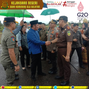 Pada hari Jumat, tanggal 11 November 2022 pukul 15.00 Wib. Kepala Kejaksaan Negeri OKU Selatan bapak Dr. Adi Purnama, S.H., M.H., Menghadiri Acara Penyambutan Gubernur Sumatera Selatan di Helipad Lapangan Terbang Kec. Banding Agung Kab. OKU Selatan dilanjutkan Pada hari Sabtu, tanggal 12 November 2022 pukul 10.30 Kepala Kejaksaan Negeri OKUSelatan Dr. Adi Purnama, S.H., M.H., Menghadiri Pembukaan Sriwijaya Ranau Grand Fondo bertempat di Icon Danau Ranau Kabupaten Ogan Komering Ulu Selatan, bertindak selaku Inspektur Upacara Bupati Ogan Komering Ulu Selatan POPO ALI MARTOPO, B. Commerce. Serta di hadiri oleh FKPD,Sekda, Ketua dan Wakil TP PKK Kabupaten,Ketua Ikatri,Ketua Persit, Ketua Bhayangkari, Ketua Ikatan Adhyaksa Dharmakarini, Ketua Dharma Wanita, Para Staf Ahli, Para Asisten, Para Kepala OPD, Para Kepala Instansi Vertikal, Para Kepala Bagian, Para Camat, Para Ketua Organisasi, dan Undangan Lainnya.