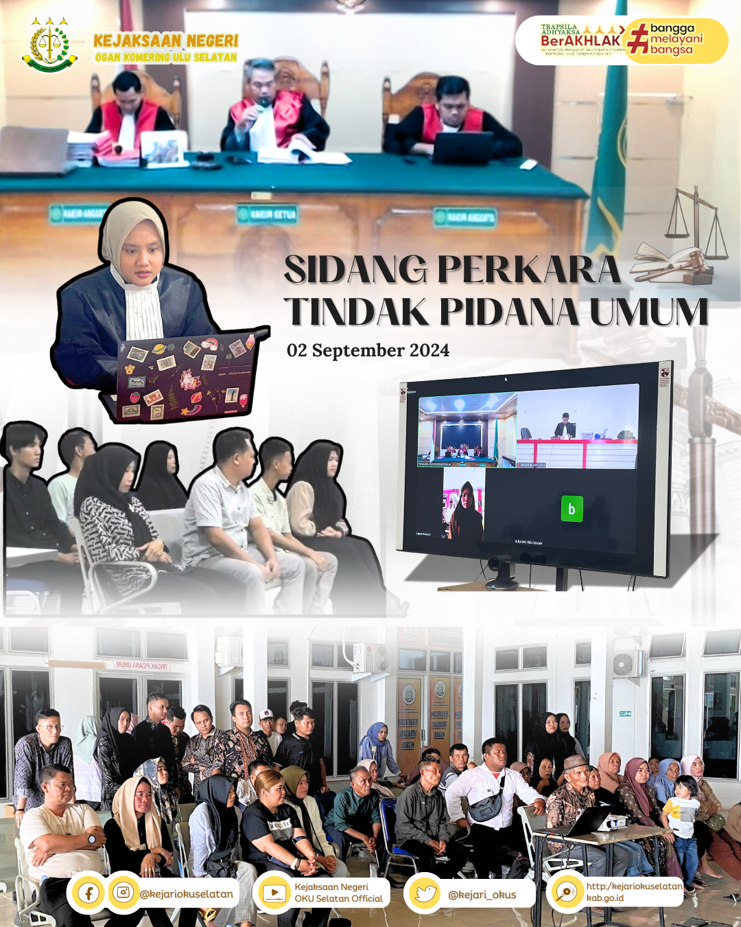 Rabu, 02 Oktober 2024 telah dilaksanakan Kegiatan Sidang Tindak Pidana Umum Kejaksaan Negeri Ogan Komering Ulu Selatan secara daring melalui…