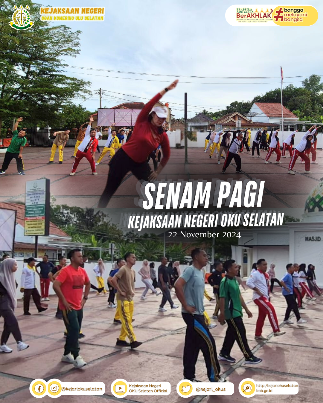 Jumat, 22 November 2024 pukul 07.30 WIB telah dilaksanakan Senam Pagi bersama di Lapangan Kantor Kejaksaan Negeri Ogan Komering Ulu…