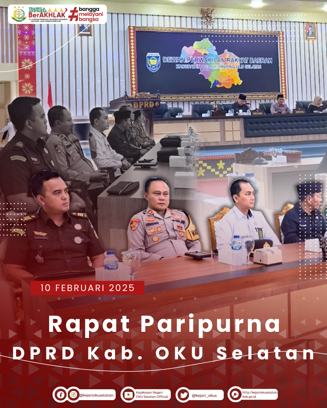 Senin, 10 Februari 2025 Sekira Pukul 14.00 WIB bertempat di Dewan Perwakilan Rakyat Daerah (DPRD) Kabupaten Ogan Komering Ulu Selatan, Kepala Kejaksaan Negeri Ogan Komering Ulu Selatan, yang diwakili oleh Kepala Seksi Bidang Perdata dan Tata Usaha Aldi Rinanda Rijasa, S.H., M.H menghadiri Rapat Paripurna DPRD OKU Selatan Masa Persidangan Kedua Tahun 2024/2025.