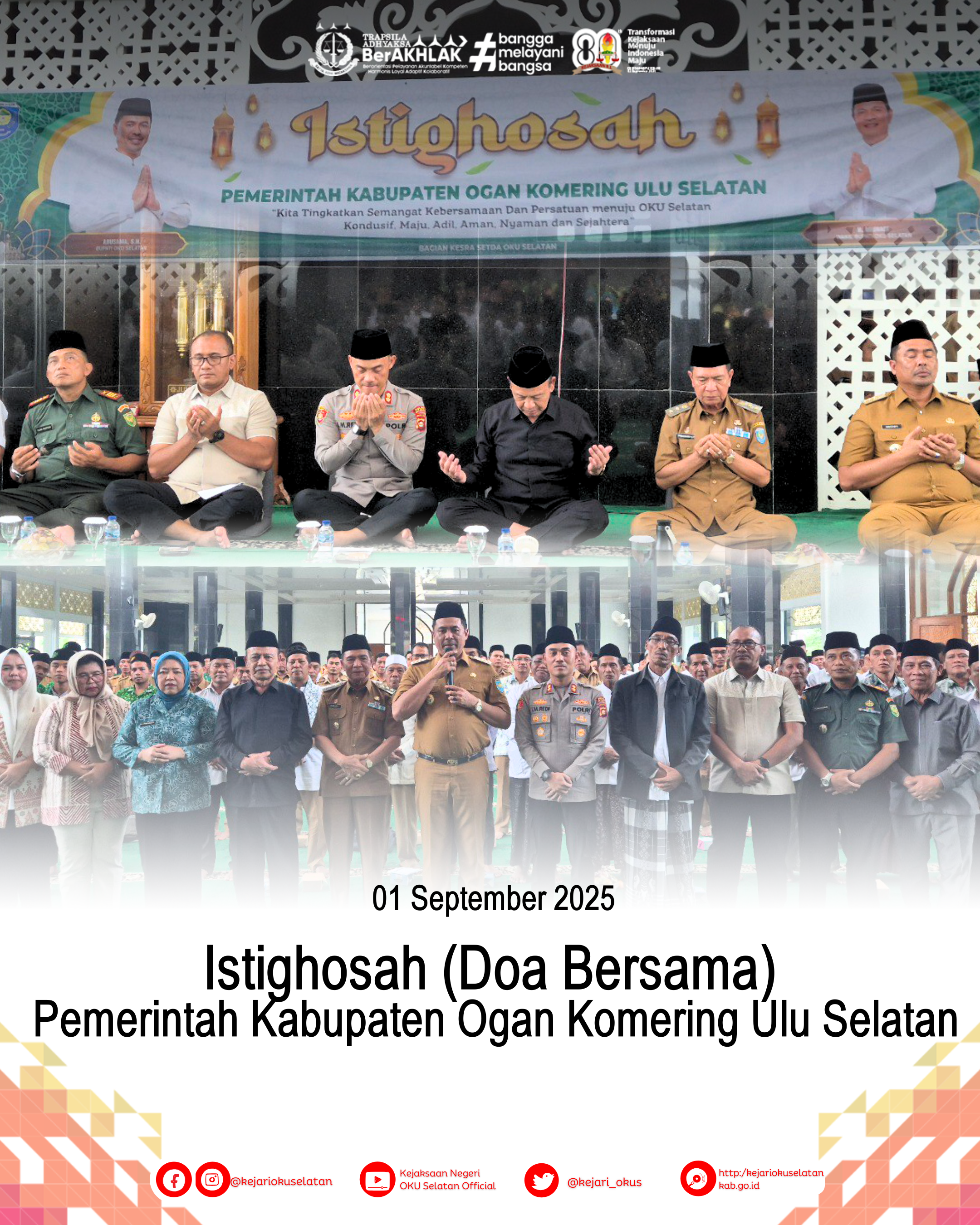 Senin, 01 September 2025 pukul 13.30 WIB, bertempat Masjid Agung Al-Muhtadin Muaradua, Kepala Kejaksaan Negeri Ogan Komering Ulu, Bapak Beni…