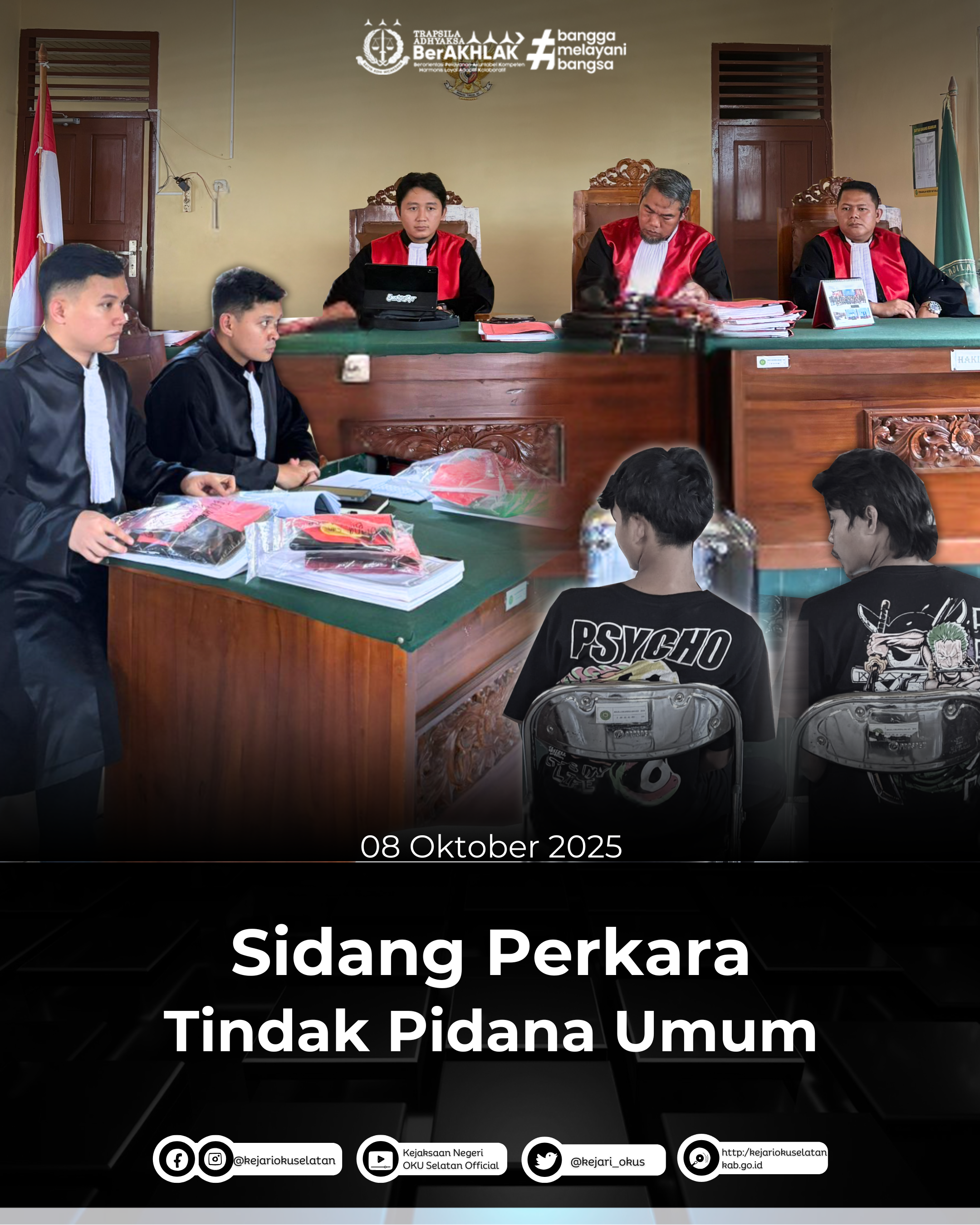 Rabu, 08 Oktober 2025 Kejaksaan Negeri Ogan Komering Ulu Selatan melaksanakan Sidang Perkara Tindak Pidana Umum pada Pengadilan Negeri Baturaja…