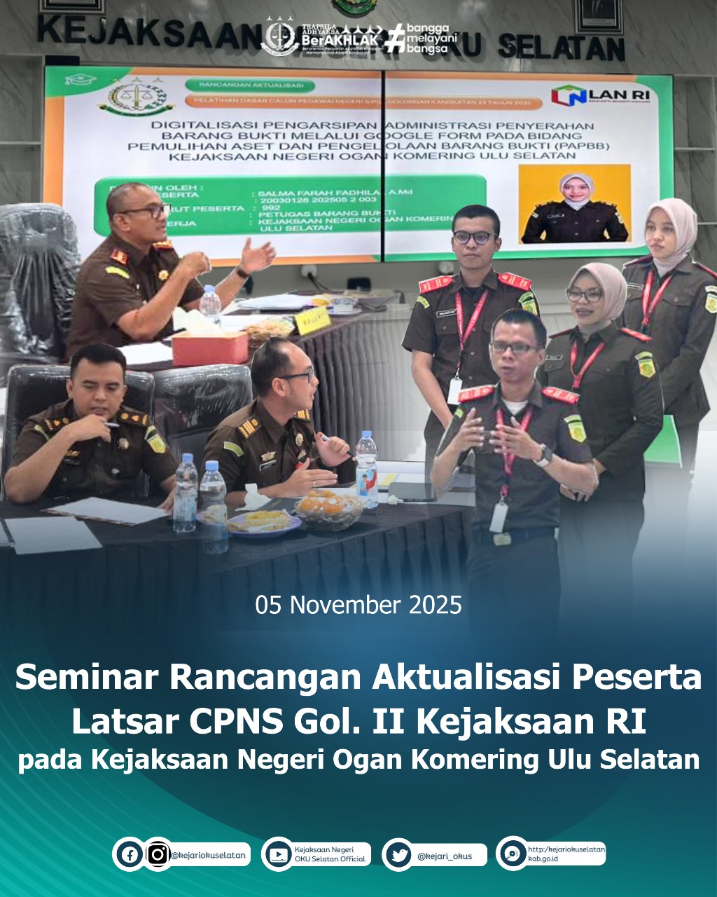 Rabu, 05 November 2025 sekira pukul 08.00 WIB bertempat di Aula Kejaksaan Negeri Ogan Komering Ulu Selatan telah dilaksanakan Seminar…