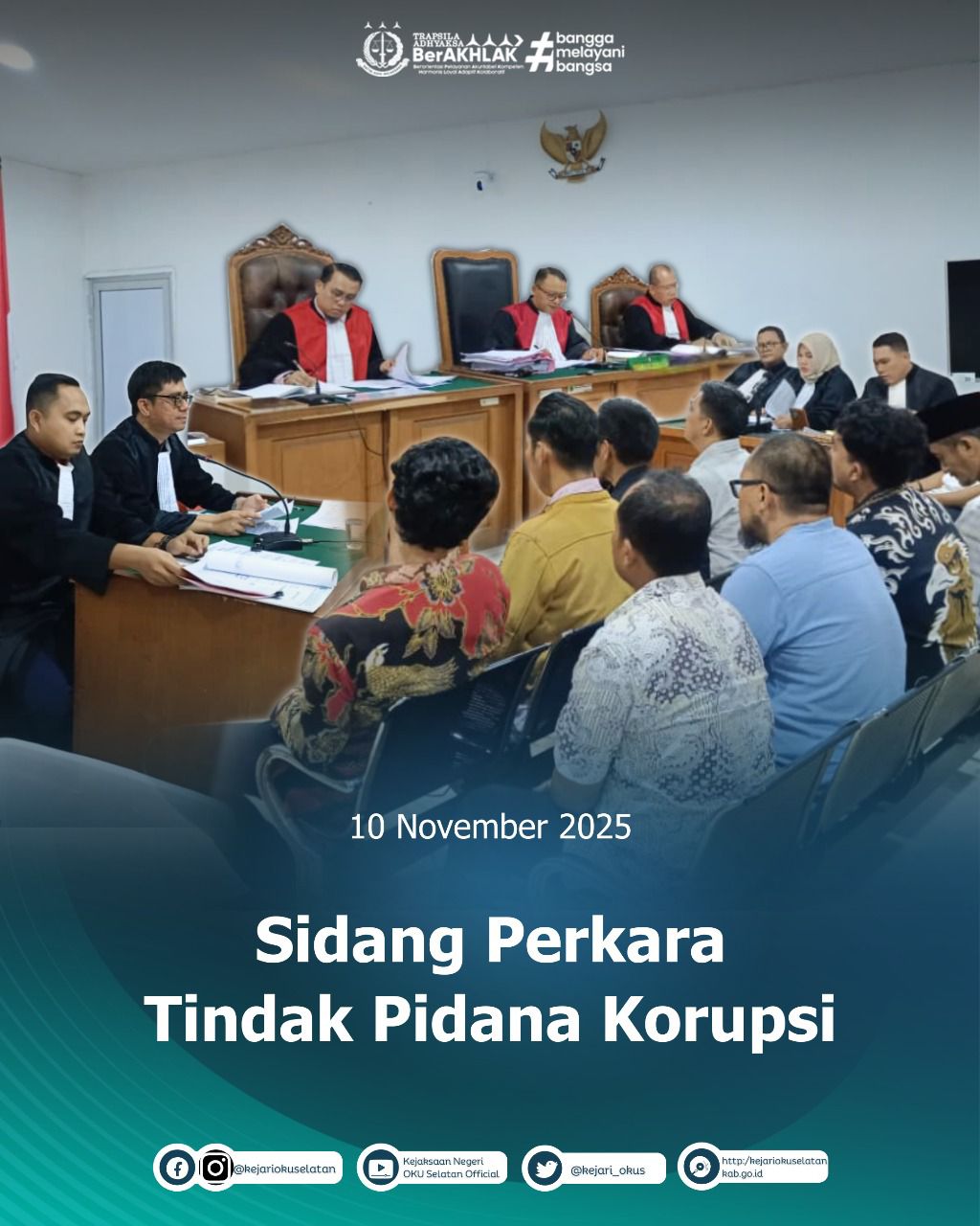 Senin, 10 November 2025 sekira Pukul 10.00 WIB bertempat di Ruang Sidang Sari Pengadilan Tindak Pidana Korupsi pada Pengadilan Negeri…