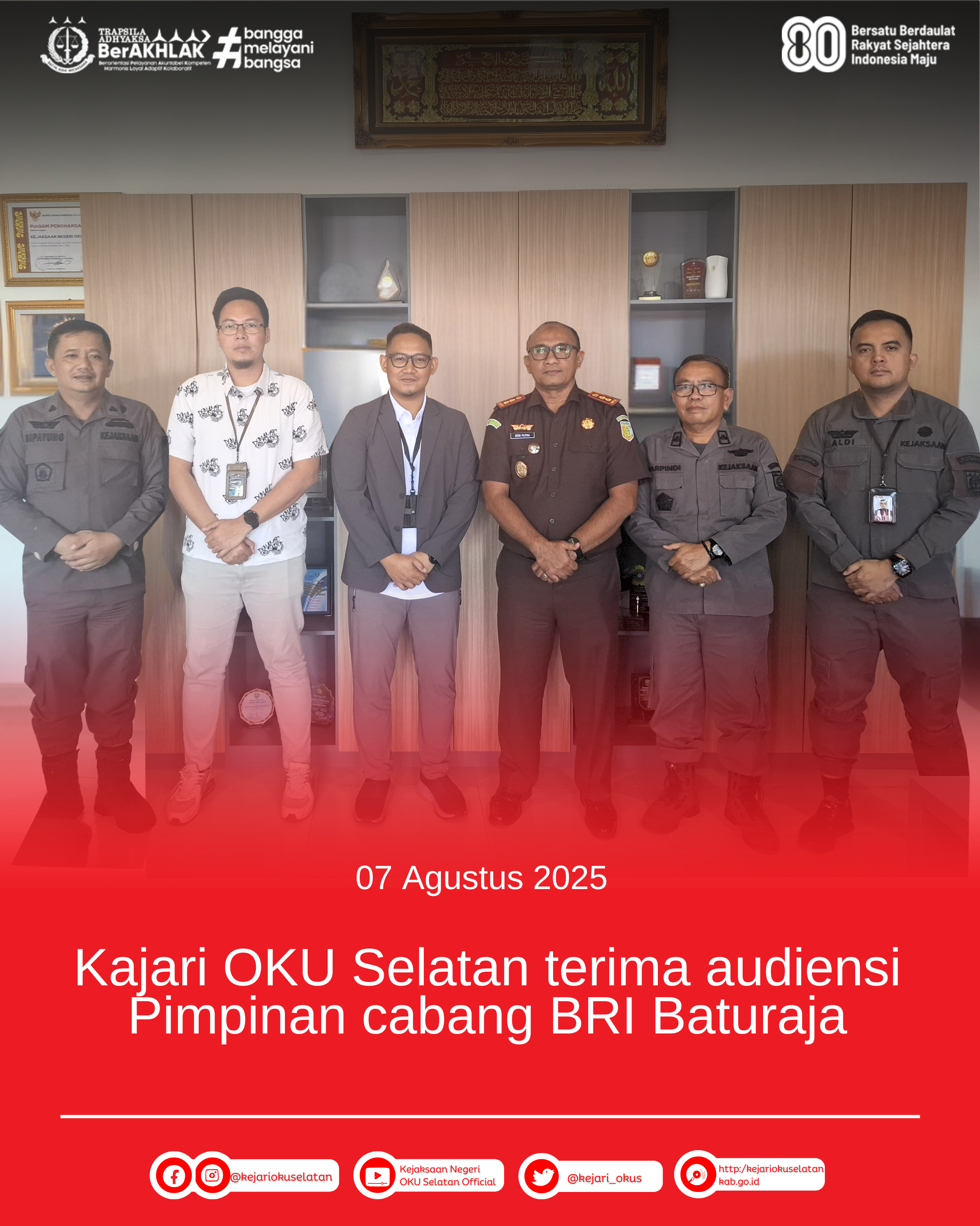 Kejari OKU Selatan terima audiensi Pimpinan Cabang Bank BRI Baturaja