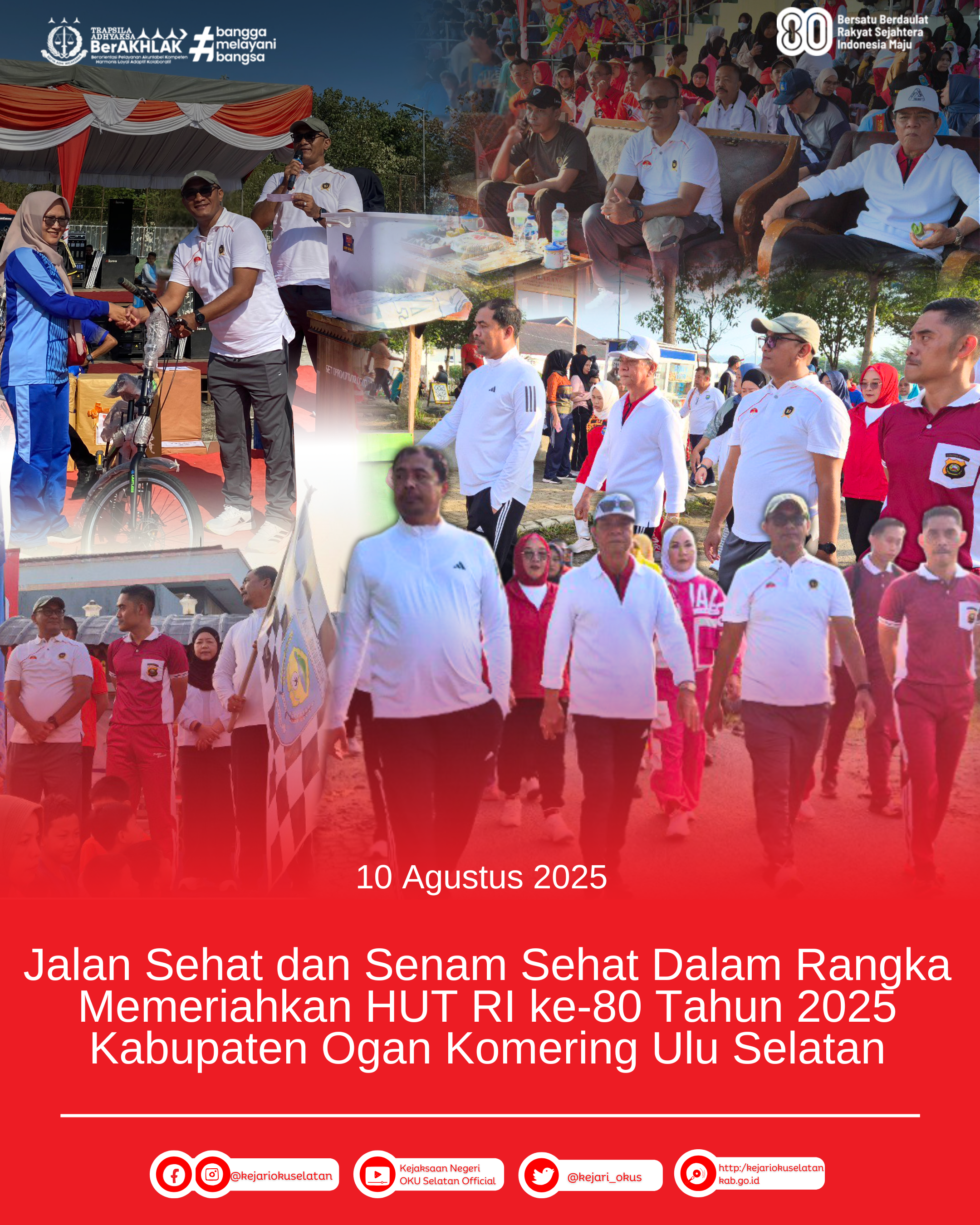 Minggu, 10 Agustus 2025 sekira Pukul 06.30 WIB bertempat di Stadion Mini Bumi Agung Muaradua, Kepala Kejaksaan Negeri Ogan Komering…