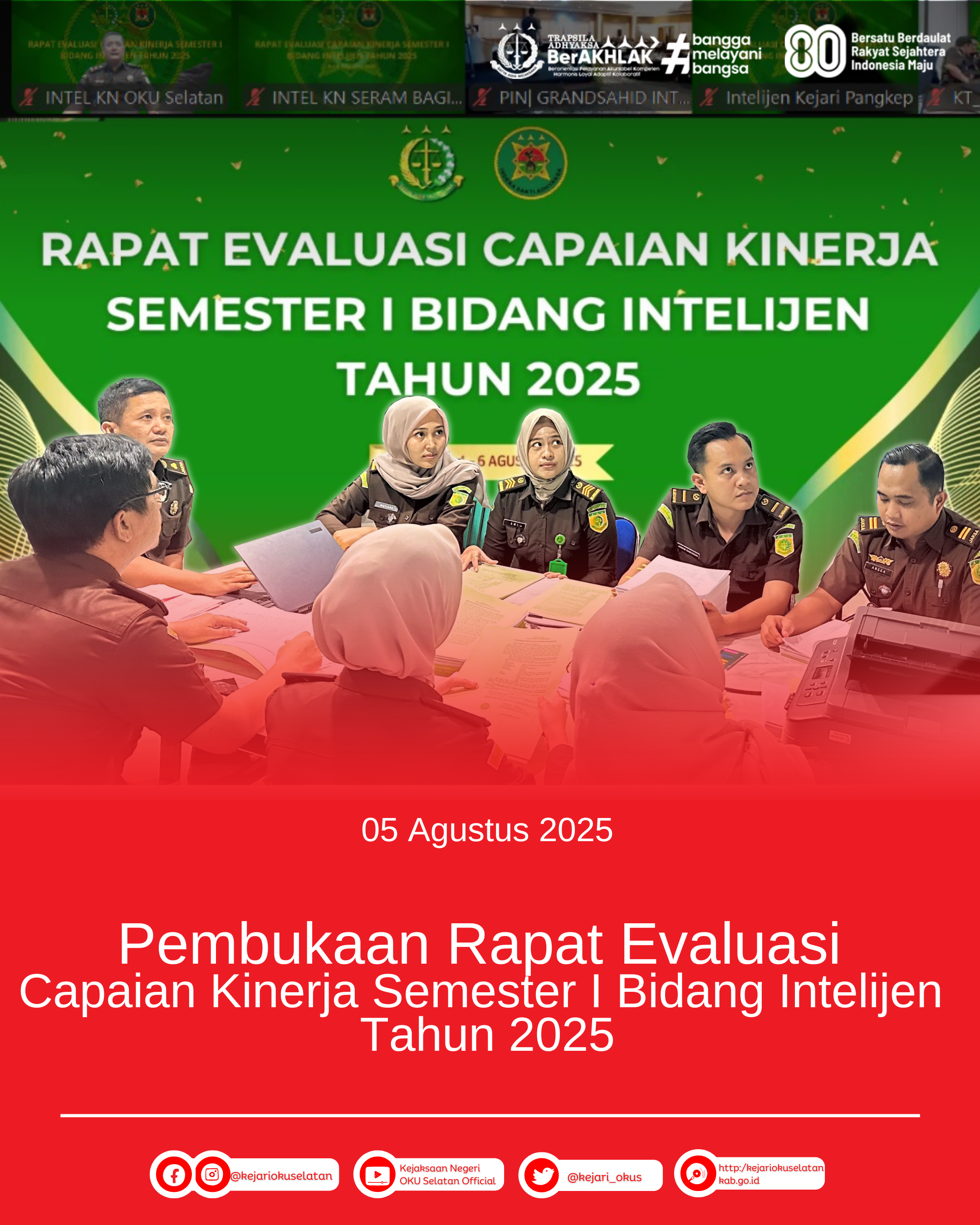 Selasa, 05 Agustus 2025 sekira pukul 10.30 WIB Bidang Intelijen Kejaksaan Negeri Ogan Komering Ulu Selatan mengikuti Rapat Evaluasi Capaian…
