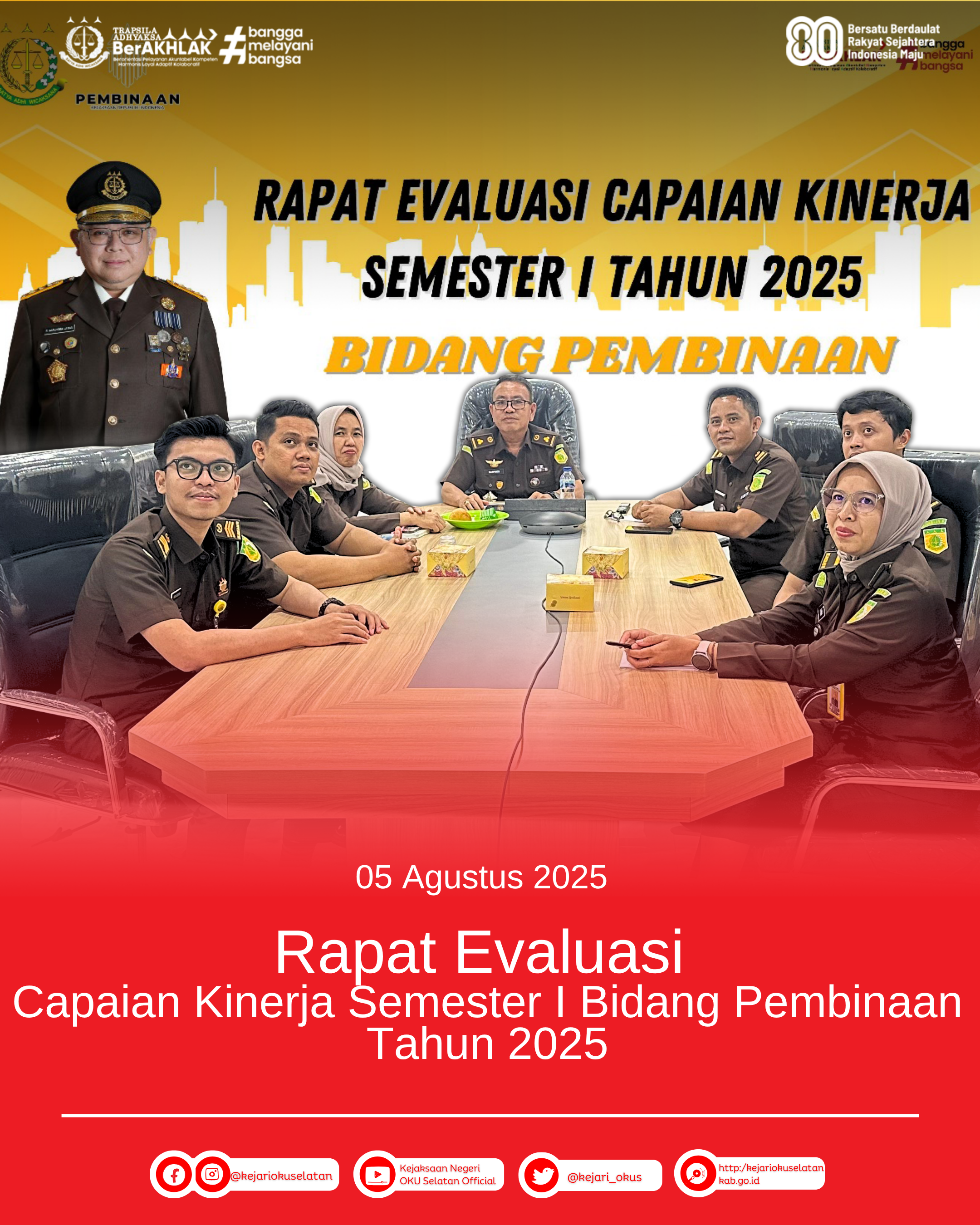Vicon Rapat Evaluasi Capaian Kinerja Semester I Bidang dan Badan Kejaksaan RI Tahun 2025