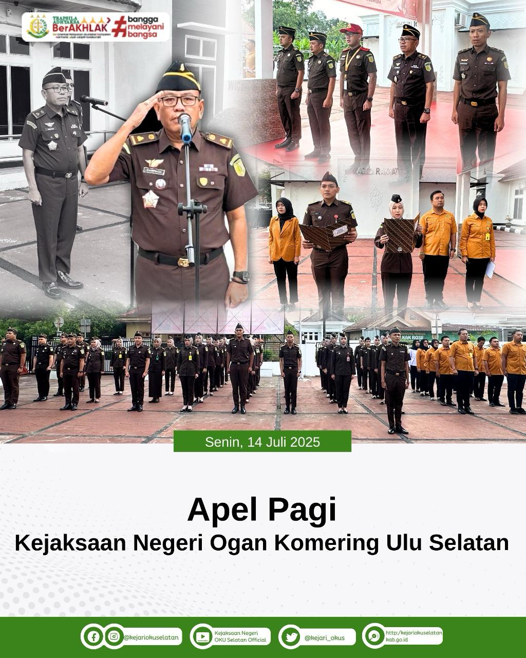 Senin, 21 Juli 2025, sekira pukul 07.30 WIB, telah dilaksanakan Apel Pagi Rutin di Lapangan Kantor Kejaksaan Negeri Ogan Komering…