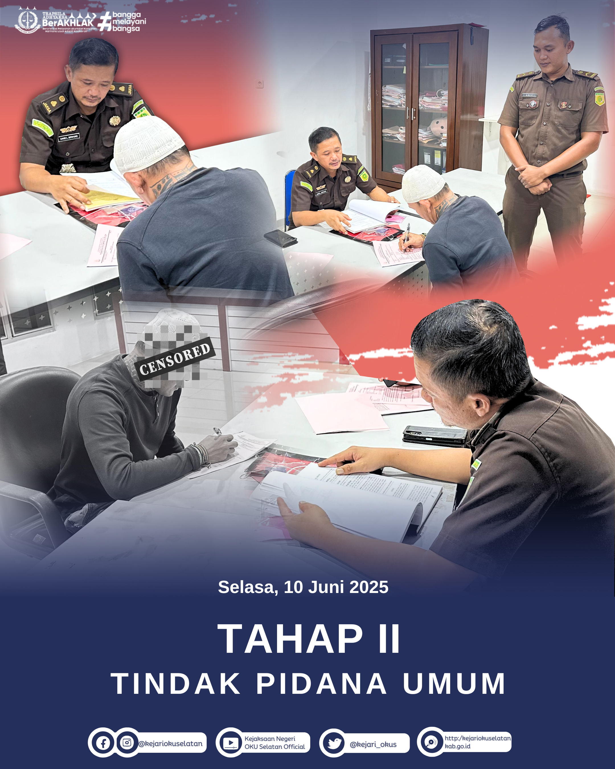 Selasa, 10 Juni 2025 bertempat di Ruang Tindak Pidana Umum Kejaksaan Negeri Ogan Komering Ulu Selatan, Tim Jaksa Penuntut Umum…