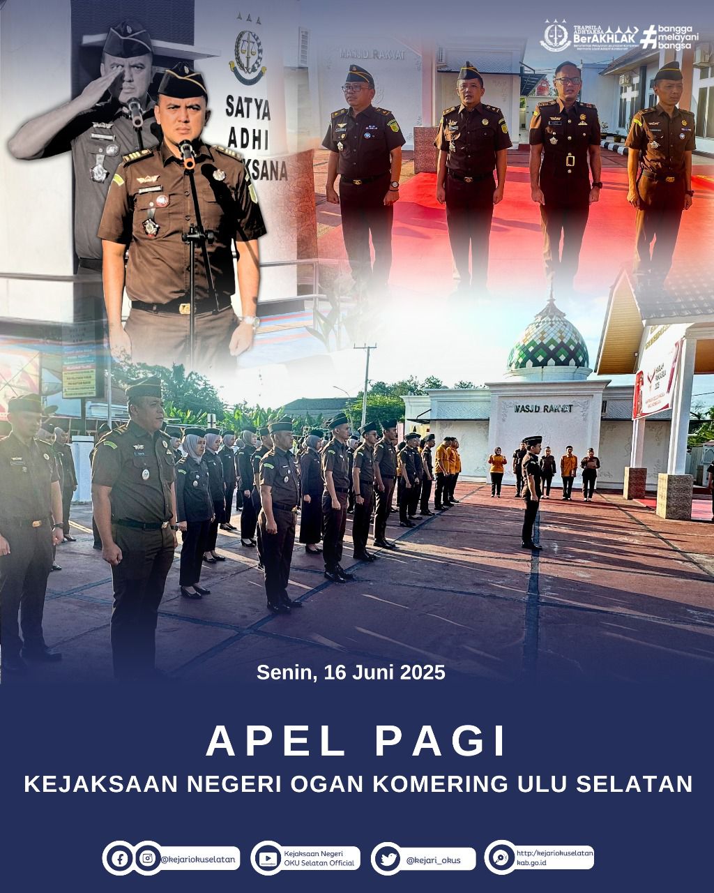 Senin, 16 Juni 2025, sekira pukul 07.30 WIB, telah dilaksanakan Apel Pagi Rutin di Lapangan Kantor Kejaksaan Negeri Ogan Komering…