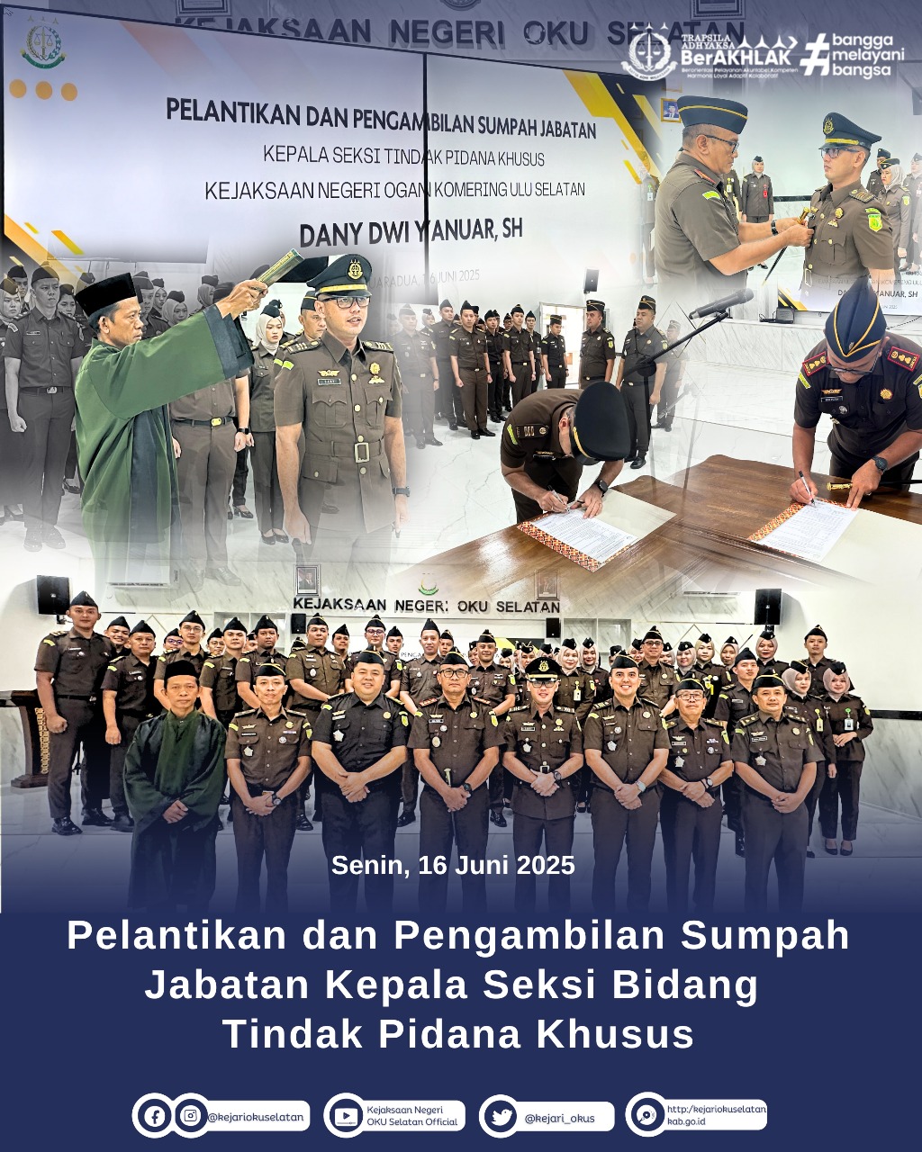 Upacara Pelantikan dan Pengambilan Sumpah Jabatan terhadap Bapak Dany Dwi Yanuar, S.H sebagai Kasi Tindak Pidana Khusus KN OKU Selatan