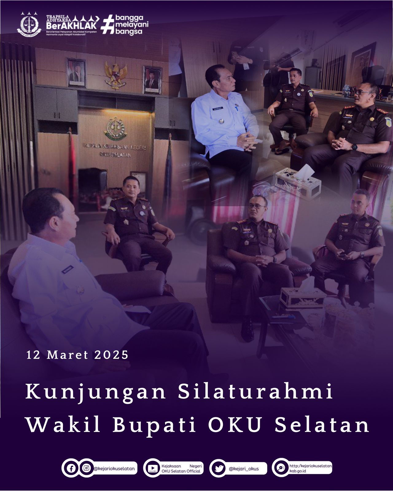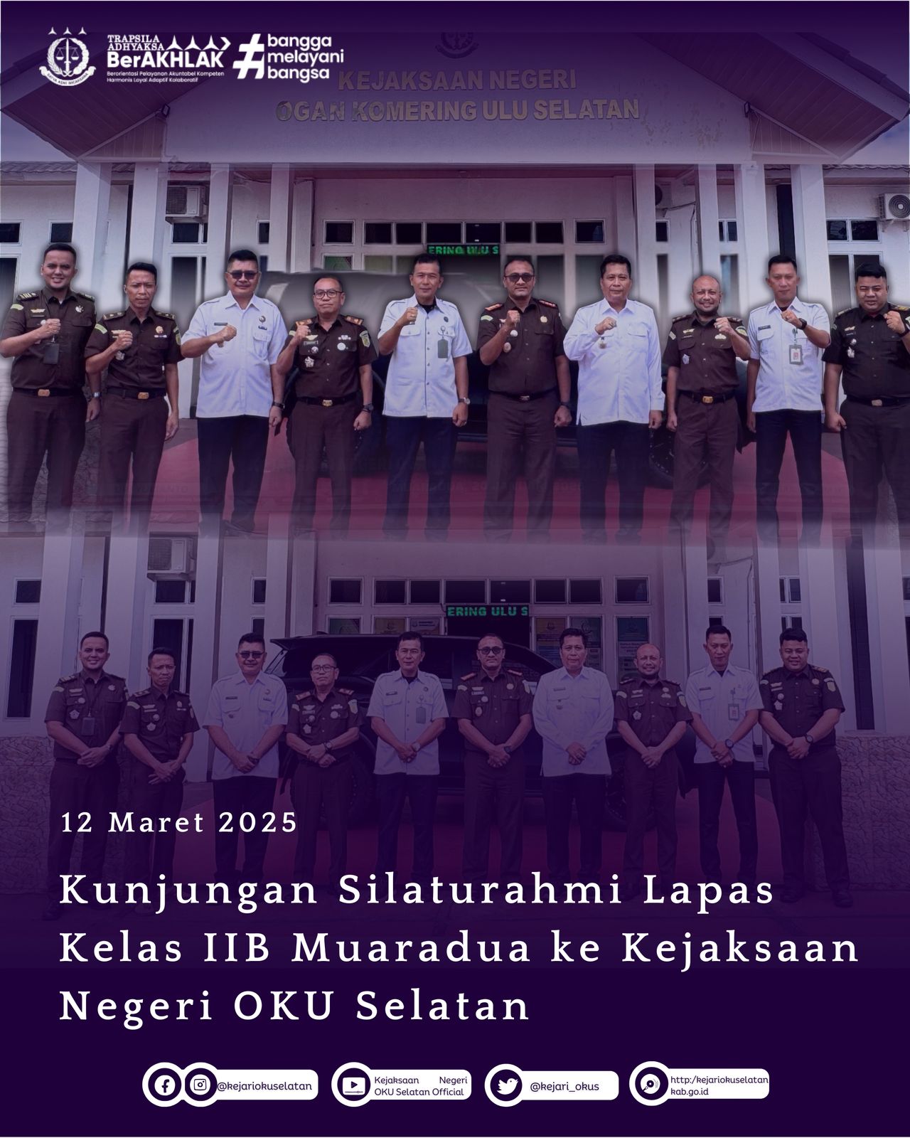 Rabu, 12 Maret 2025, pukul 11.30 WIB, Kepala Kejaksaan Negeri Ogan Komering Ulu Selatan menerima kunjungan dari Kepala Lembaga Pemasyarakatan…
