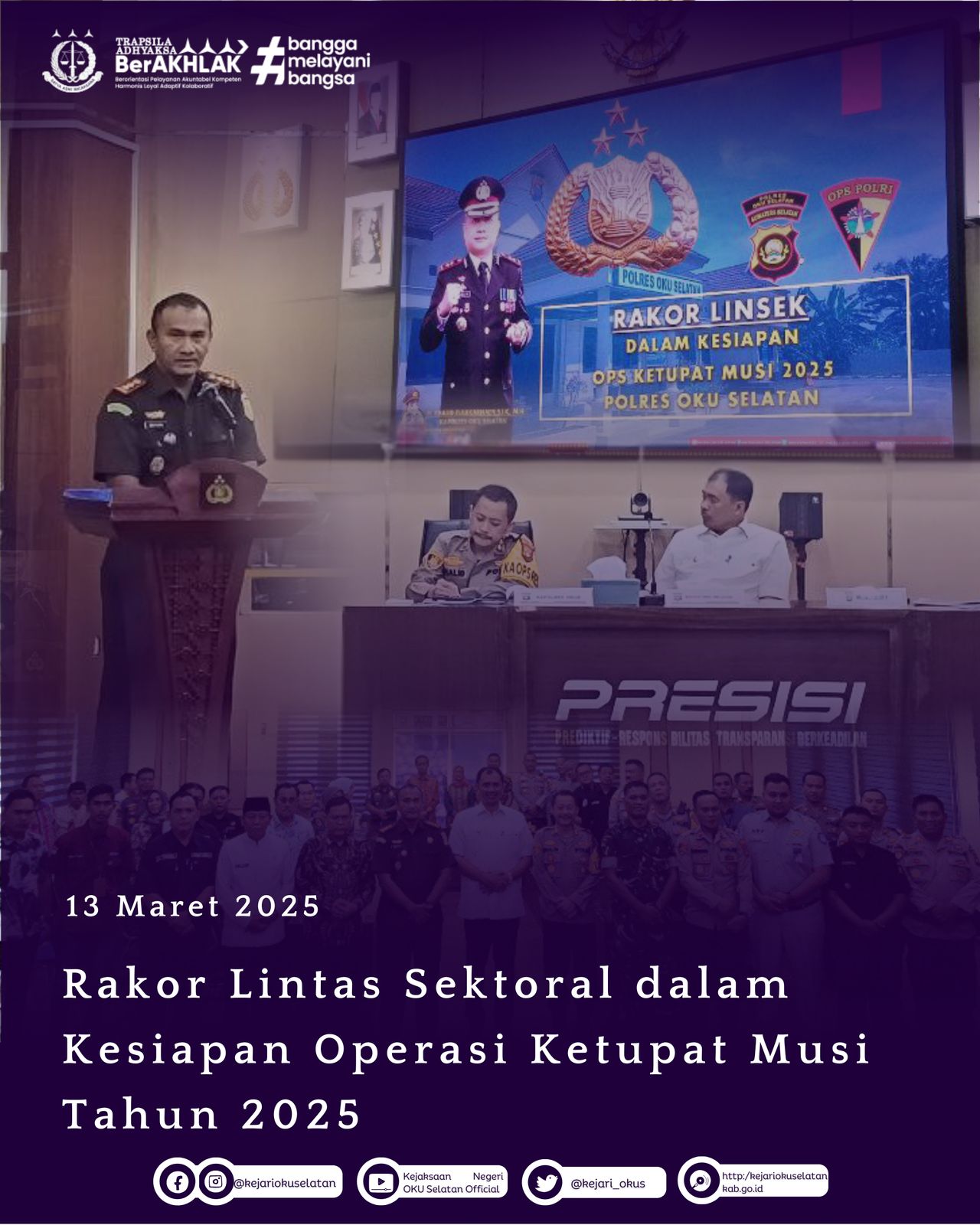 Minggu, 16 Maret 2025, sekitar pukul 20.30 WIB, Kepala Kejaksaan Negeri Ogan Komering Ulu Selatan, Bapak Beni Putra, S.H., M.H.,…