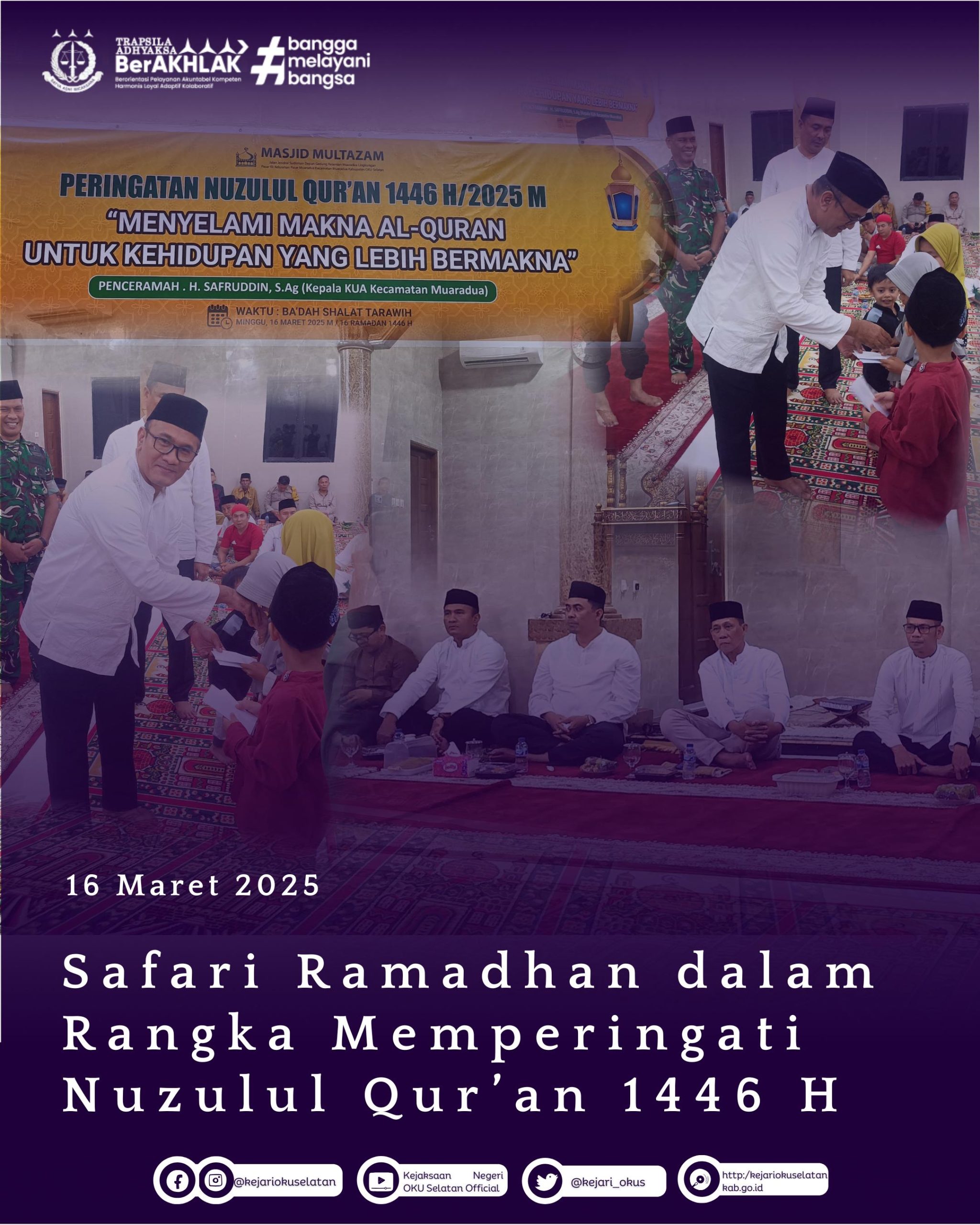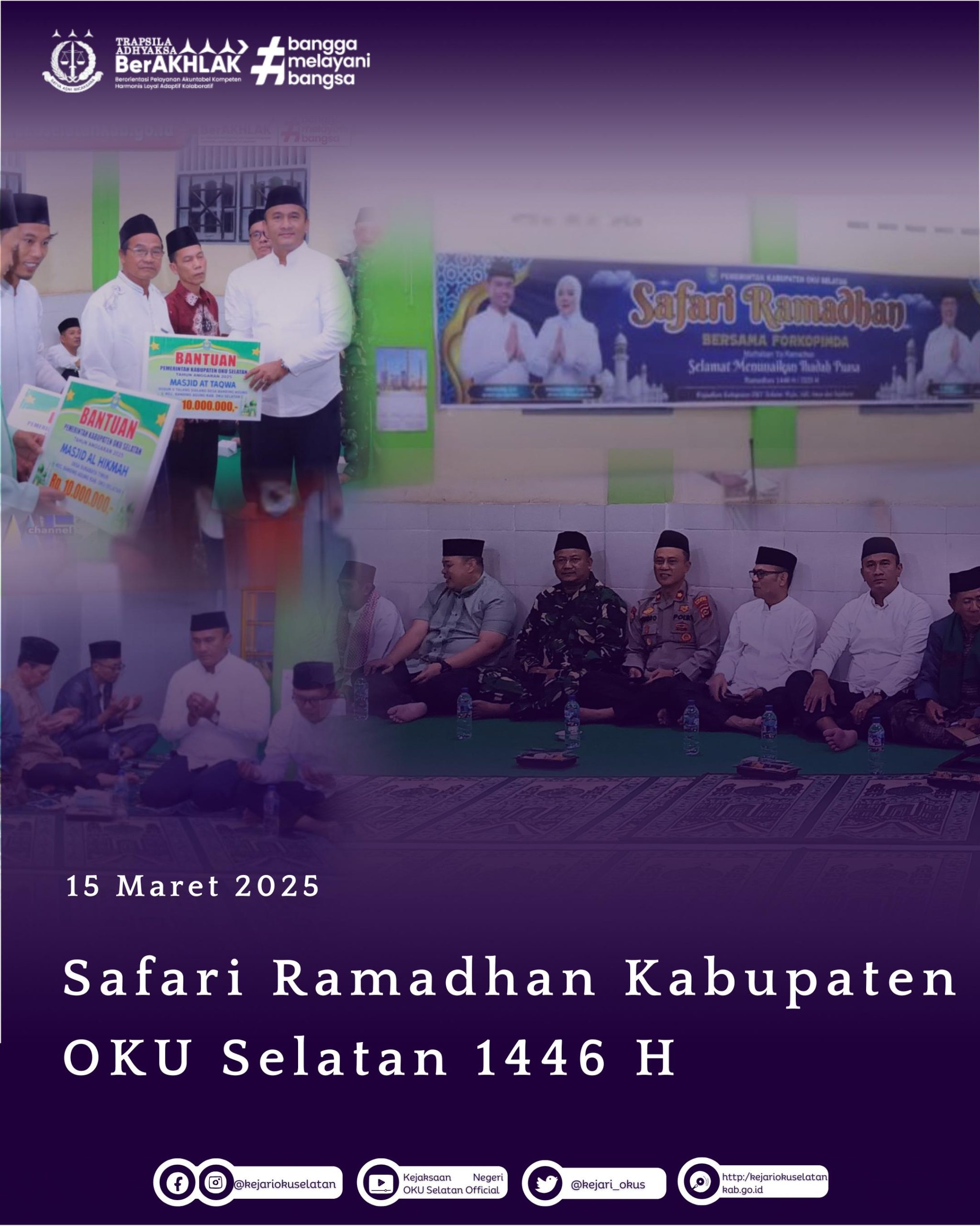 Sabtu, 15 Maret 2025, Kepala Kejaksaan Negeri Ogan Komering Ulu Selatan, Bapak Beni Putra, S.H., M.H., menghadiri kegiatan Safari Ramadhan…