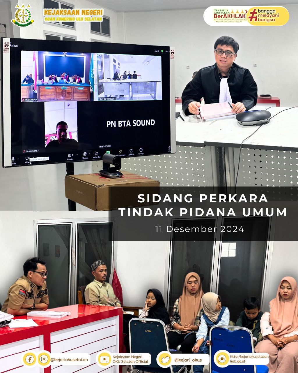 Rabu, 11 Desember 2024 telah dilaksanakan Kegiatan Sidang Tindak Pidana Umum Kejaksaan Negeri Ogan Komering Ulu Selatan secara daring melalui…