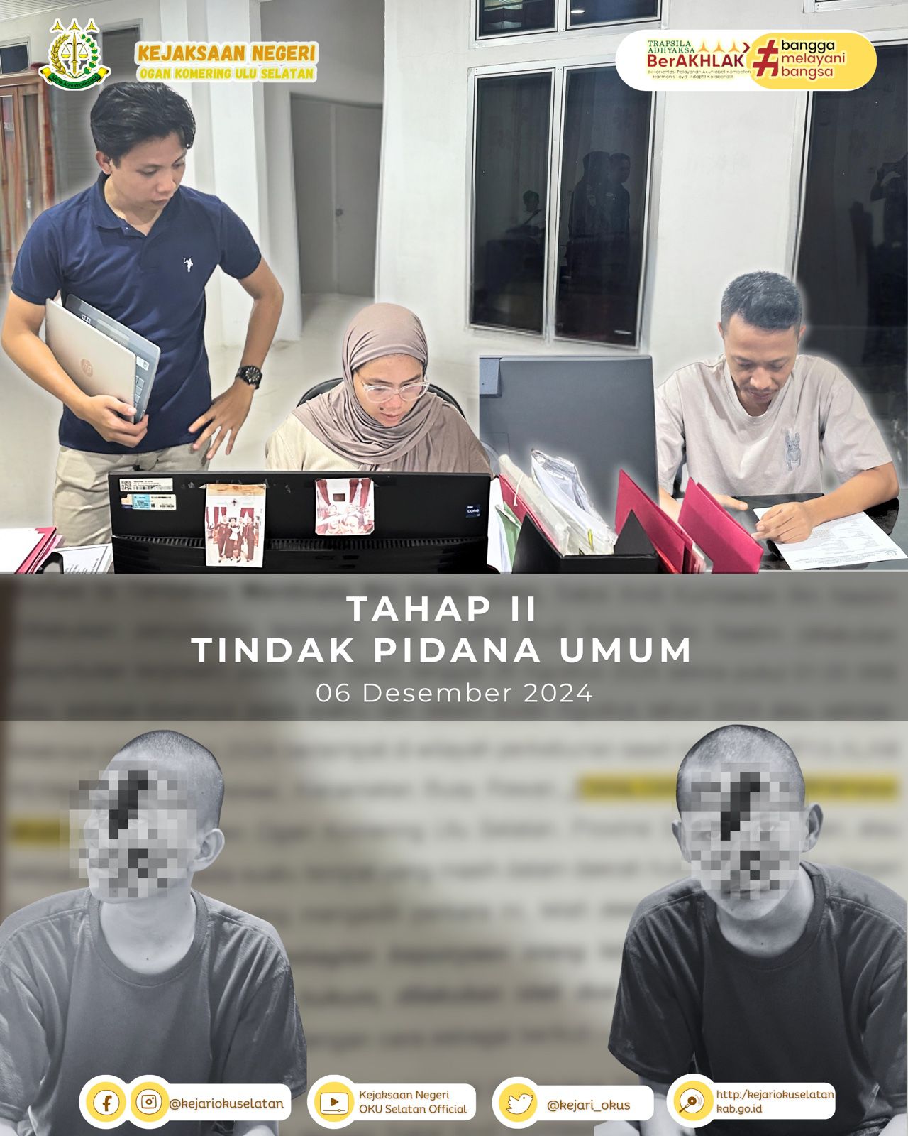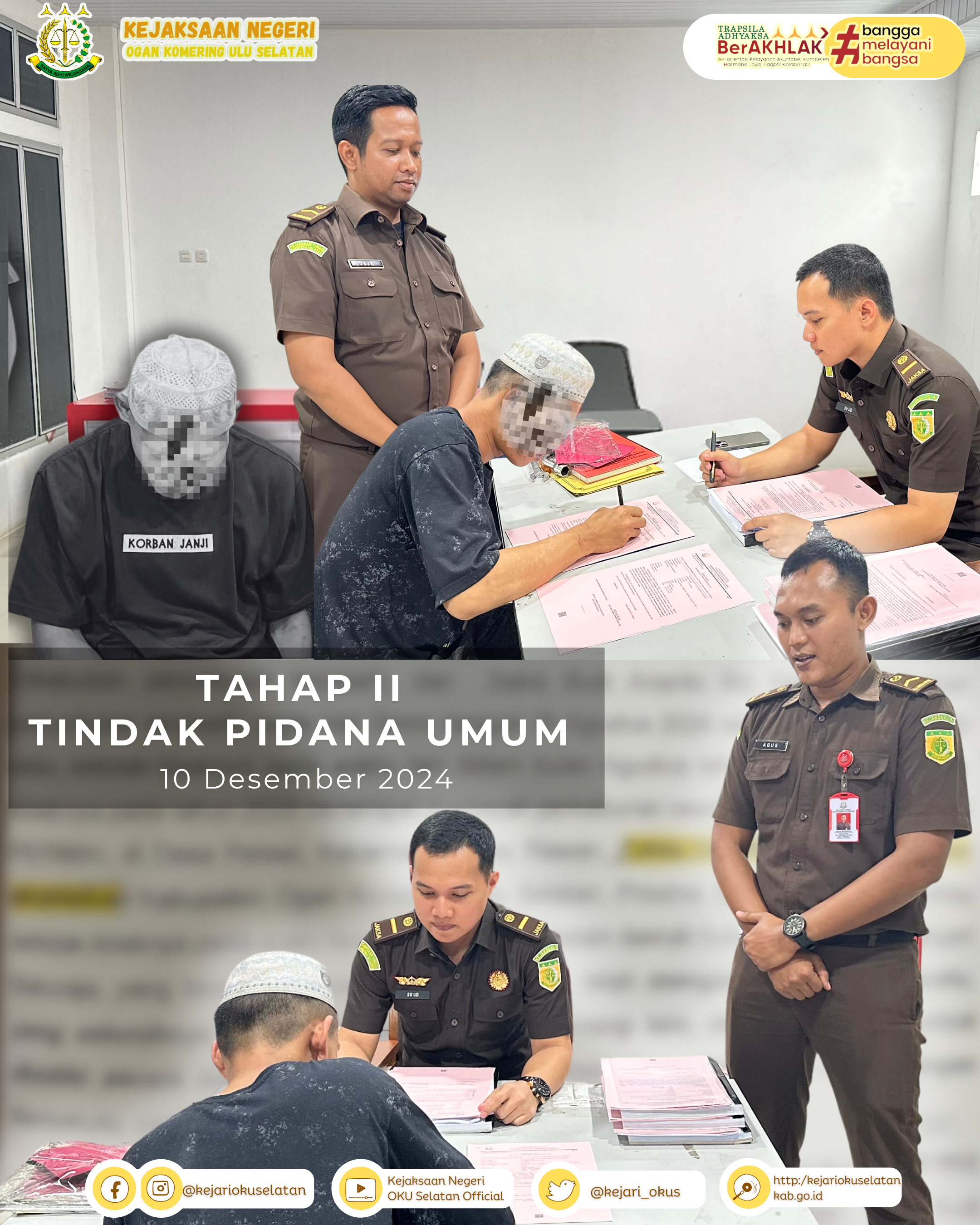 Selasa, 10 Desember 2024 bertempat di Ruang Tindak Pidana Umum Kejaksaan Negeri Ogan Komering Ulu Selatan, Tim Jaksa Penuntut Umum…