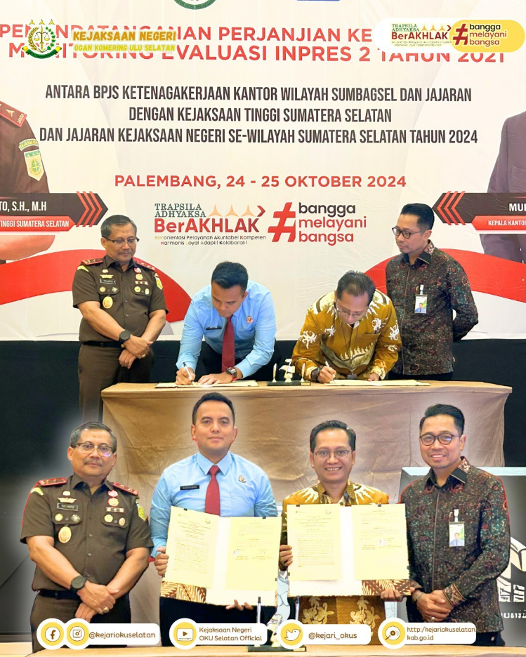 Penandatanganan Memorandum of Understanding (MoU) antara Kejaksaan Tinggi Sumatera Selatan dengan Badan Penyelenggara Jaminan Sosial (BPJS) Ketenagakerjaan Kantor Wilayah Sumbagsel
